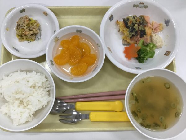 今日はさけのさくさくと納豆和えのさくさくと食感を楽しむメニューでした!