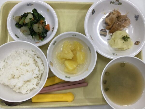今日は鶏肉のみそ焼きでした!ごはんが進む味つけでおいしかったですよ♪