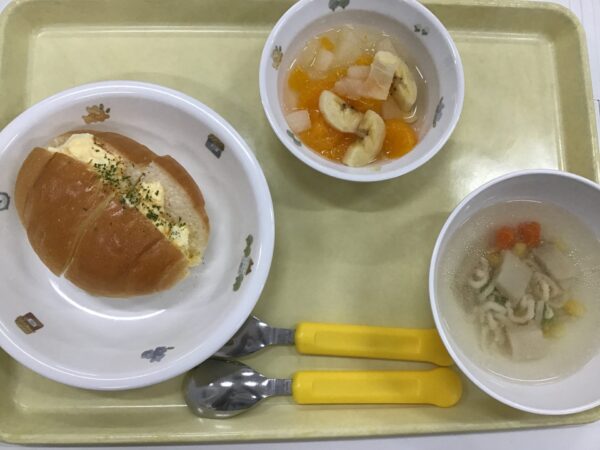 今日はたまごサンドでした!たまごがたっぷり入っていて、みんな喜んで食べましたよ♪