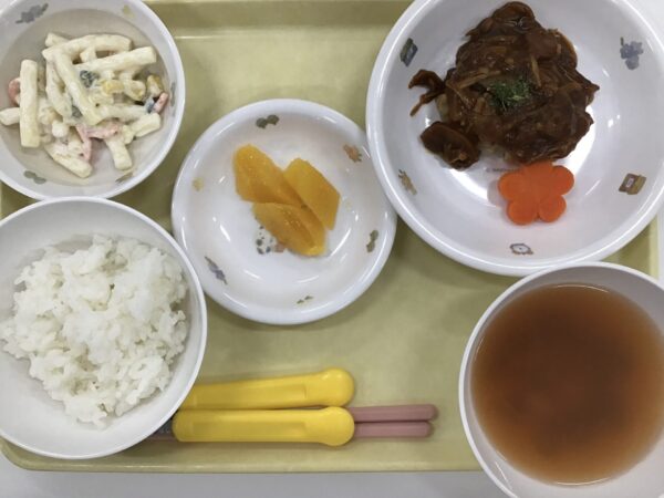 ソースたっぷりの煮込みハンバーグは子ども達に大好評でした!
