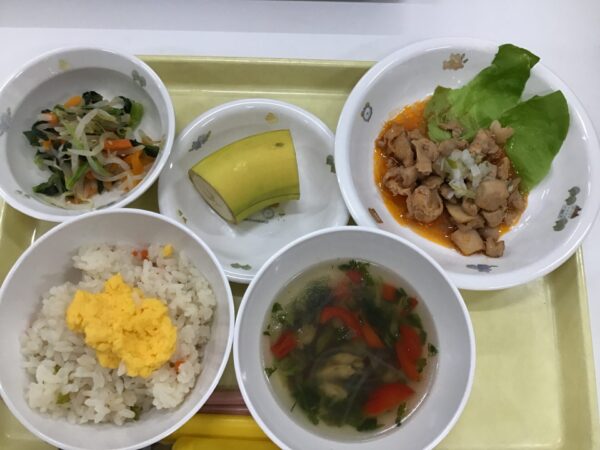 薄味のチャーハンですが、鶏肉のチリ風との相性が良く美味しかったです。
