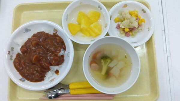 今日は、子ども達に人気のチキンカレーでした! たくさんおかわりをしてくれましたよ