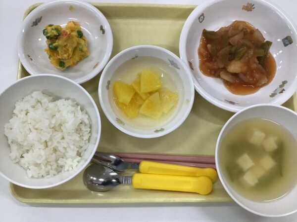 今日のケチャップソースかけは甘味もあって、みんな喜んで食べました♪おかわりの声もたくさんありましたよ!