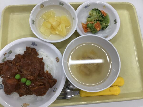 ハヤシライスのボリューム感と、ミモザサラダのさっぱり感の