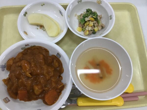 ブロッコリーのサラダがさっぱり味でおいしく、カレーも甘くて良かったです。