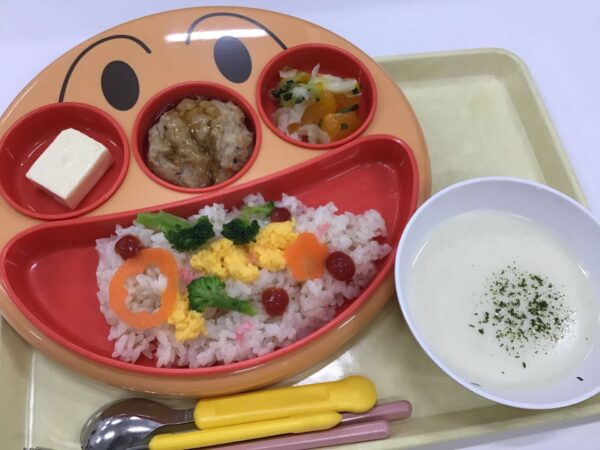 今日は、子どもたちから人気のアンパンマンランチです。