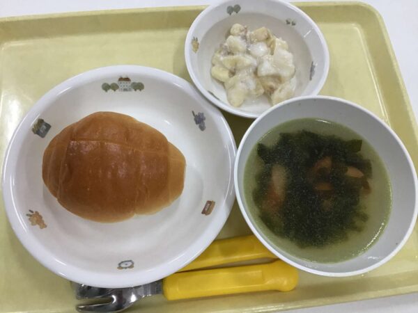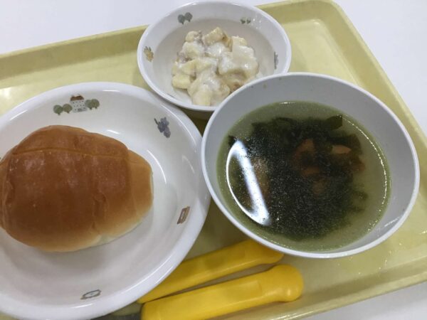 ワカメスープにウィンナーが入っていて、美味しかったです。